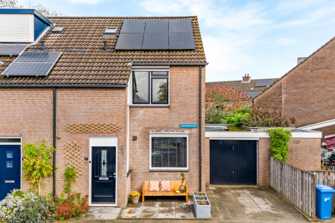 Ook buiten is het genieten. De zonnige tuin (zuidwesten) aan de achterzijde is fraai aangelegd met een terras, een strook gras en groene borders langs de randen. Achterin de tuin staat een handige berging voor fietsen en tuinspullen. Dankzij de hoekligging geniet je van extra privacy en een open gevoel.